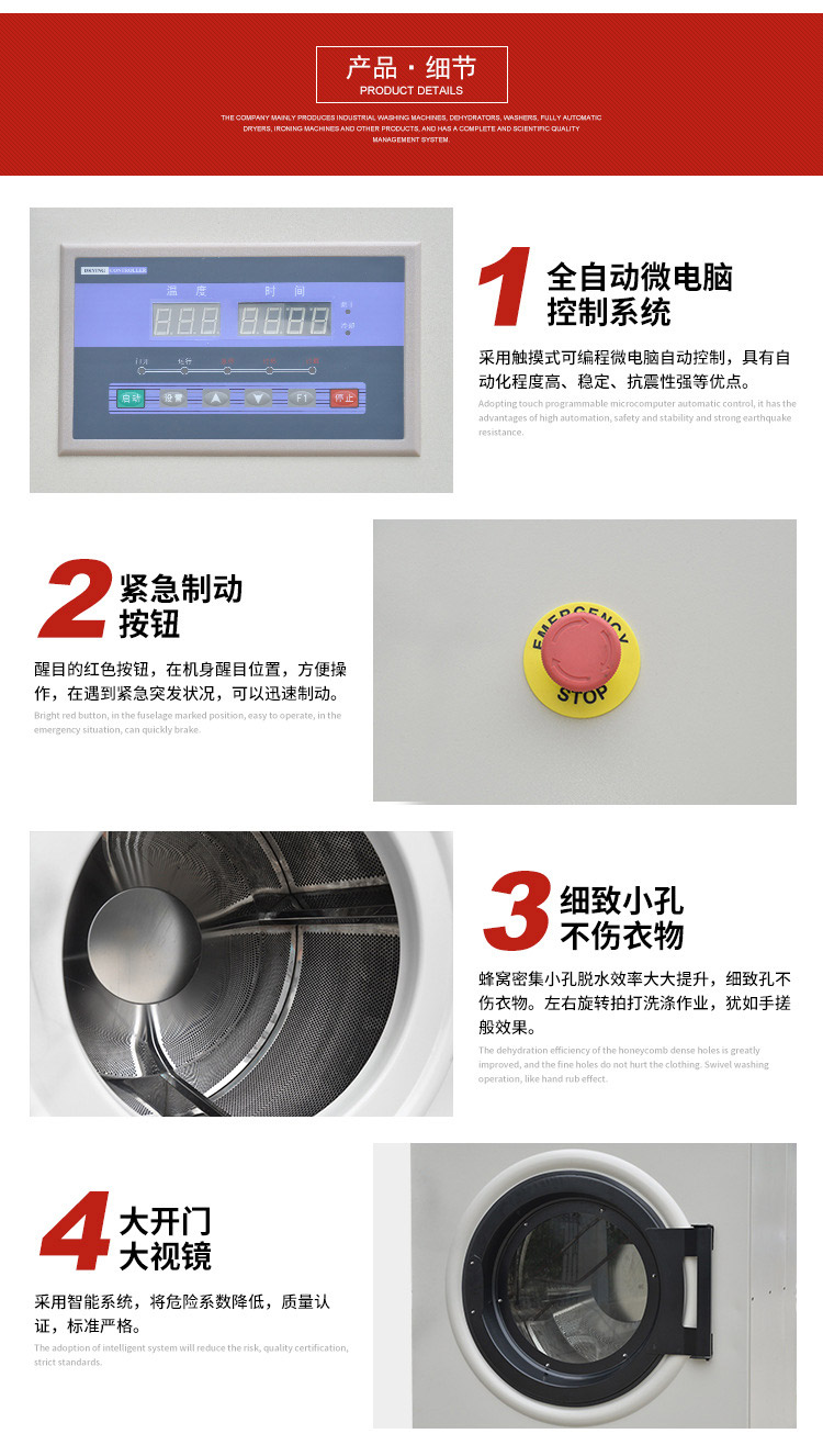 2、洗衣房工業(yè)烘干機的電加熱發(fā)熱管為不銹鋼制成,升溫快,發(fā)熱效率高。