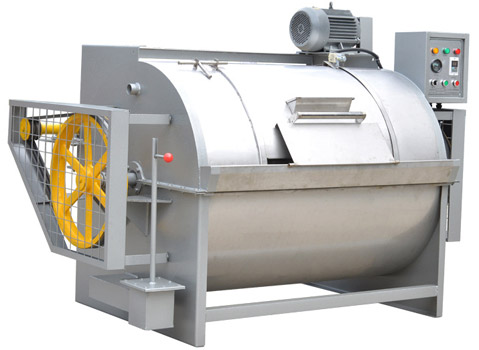 水洗機是滾筒型,內、外殼采用優(yōu)質不銹鋼制作而成,平整光滑、耐腐蝕、不損傷織物。水洗機由內筒、外筒、電機、支撐總成、傳動總成、電器總成組成。結構合理、安裝使用方便。水洗機工作原理:由頂置電機、三角膠帶、帶動傳動總成,使內筒作正反轉運轉,通過織物與織物、織物與內筒壁的相互摩擦,達到洗滌效果。機器內置過熱、過載裝置、定時裝置、正反轉控制裝置。水洗機外筒門設有安全裝置,若運行中門被打開,機器立即停止運轉,確保機器、操作人員的安全。按容量大小分為:15kg、30kg、50kg、70kg、100kg、150kg、200kg等系列。該容量為干衣物的重量。
