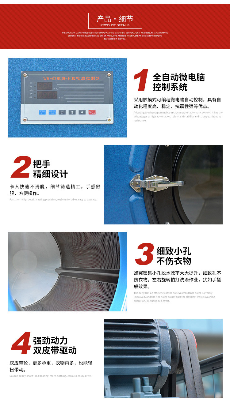 我公司專注于工業(yè)洗衣機(jī),脫水機(jī),水洗機(jī)等洗滌設(shè)備的生產(chǎn),同時(shí)我司為特殊用戶訂制非標(biāo)洗滌機(jī)械。熱忱歡迎廣大客戶來電咨詢產(chǎn)品信息。