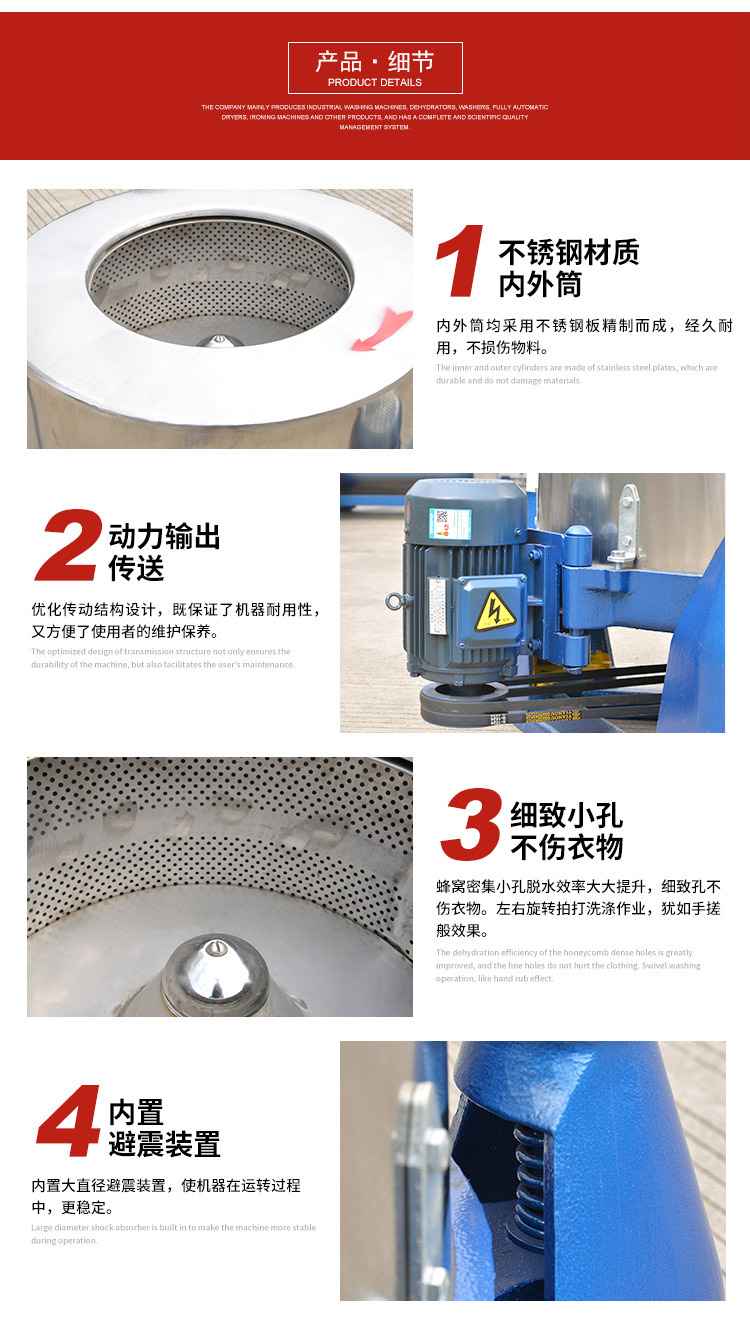 我公司專注于工業(yè)洗衣機(jī),脫水機(jī),水洗機(jī)等洗滌設(shè)備的生產(chǎn),同時(shí)我司為特殊用戶訂制非標(biāo)洗滌機(jī)械。熱忱歡迎廣大客戶來電咨詢產(chǎn)品信息。
