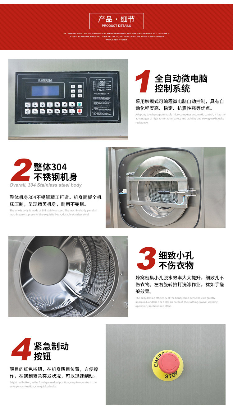 不銹鋼外缸、防腐蝕;內(nèi)膽采用不銹鋼材料焊接而成;門(mén)圈采用流行的圓口對(duì)接式,防止洗滌時(shí)損傷衣物。